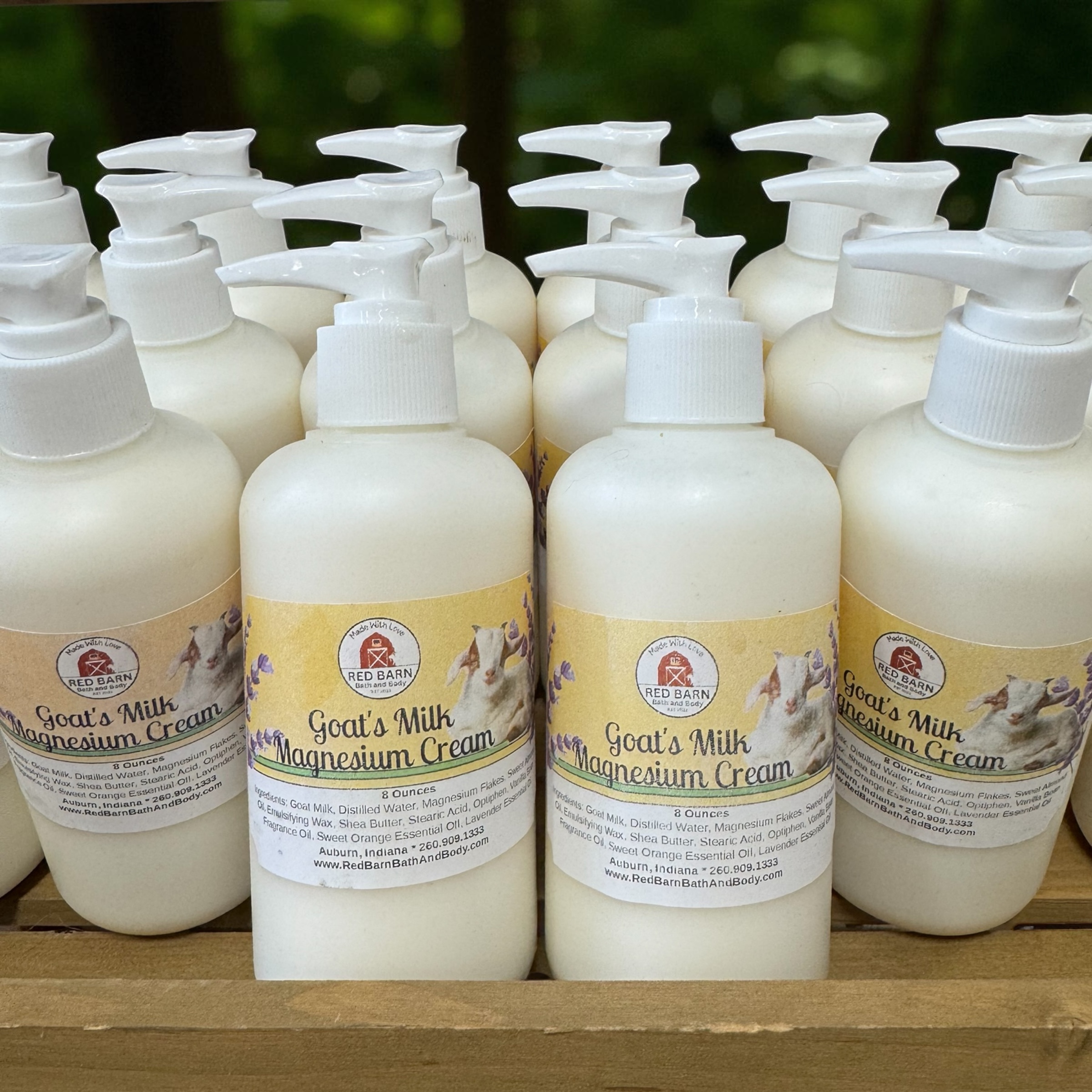 We raise and milk the goats – and so when asked which is my favorite product – I always say the goats’ milk products! We do not vaccinate our goats, and we do not give our goats any antibiotics. Even the dewormer that I use is herbal! The magnesium cream formula is the same as our lotions, except we add magnesium chloride – so it’s GREAT lotion!